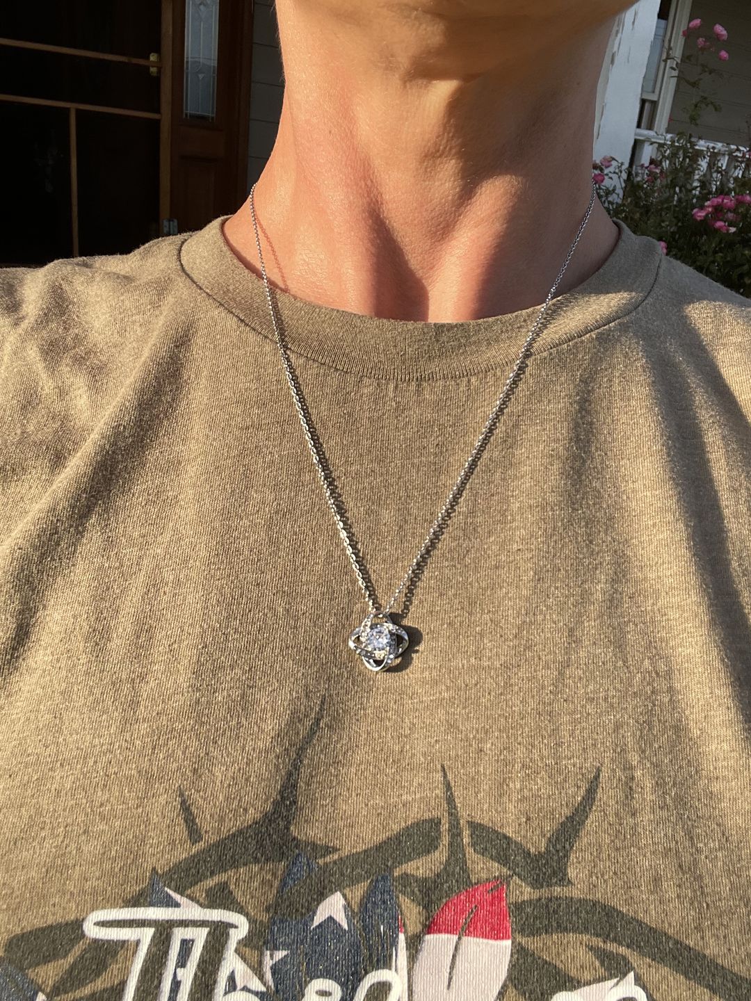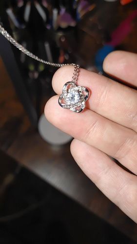 Imagine her reaction receiving this beautiful Love Knot Necklace. Representing an unbreakable bond between two souls, this piece features a beautiful pendant embellished with premium cubic zirconia crystals. Surprise your loved one with this gorgeous gift today!