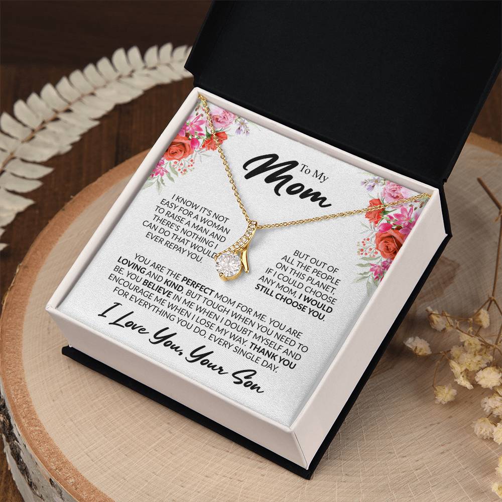 Imagine her reaction when she opens this stunning gift! The Alluring Beauty necklace features a petite ribbon shaped pendant that is sure to dazzle your special someone. Whether it's a birthday or anniversary, make sure to get her a gift she will love for years to come.