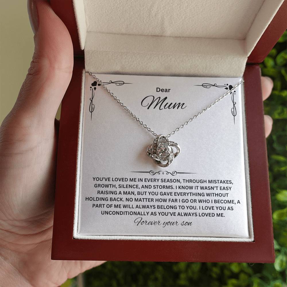 Imagine her reaction receiving this beautiful Love Knot Necklace. Representing an unbreakable bond between two souls, this piece features a beautiful pendant embellished with premium cubic zirconia crystals. Surprise your loved one with this gorgeous gift today!