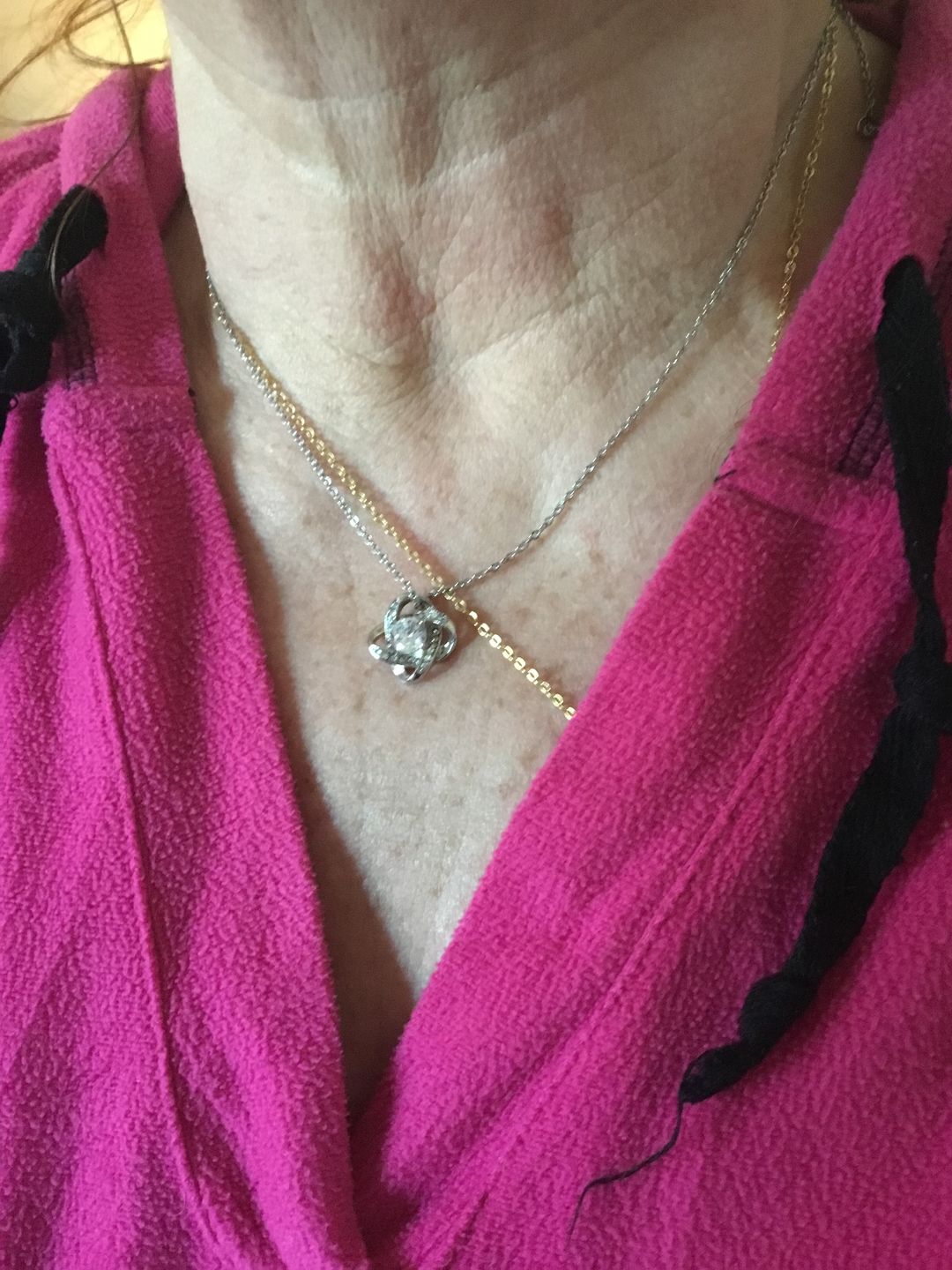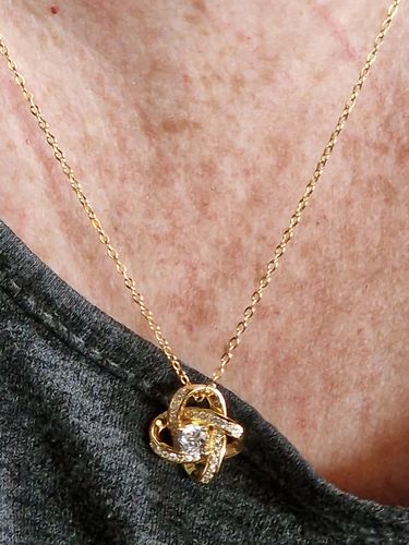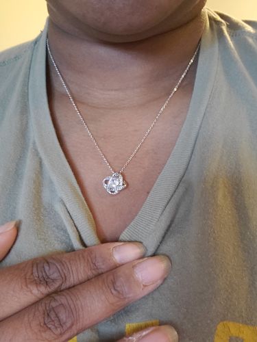 Imagine her reaction receiving this beautiful Love Knot Necklace. Representing an unbreakable bond between two souls, this piece features a beautiful pendant embellished with premium cubic zirconia crystals. Surprise your loved one with this gorgeous gift today!