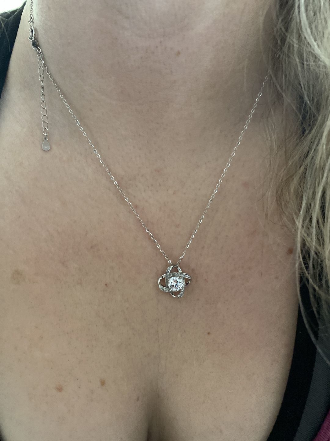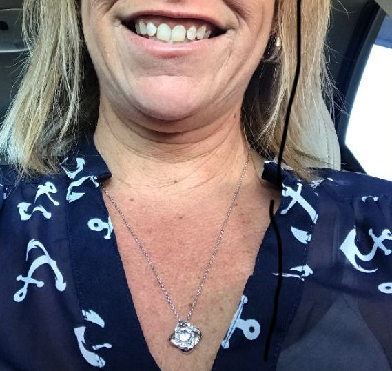 Imagine her reaction receiving this beautiful Love Knot Necklace. Representing an unbreakable bond between two souls, this piece features a beautiful pendant embellished with premium cubic zirconia crystals. Surprise your loved one with this gorgeous gift today!